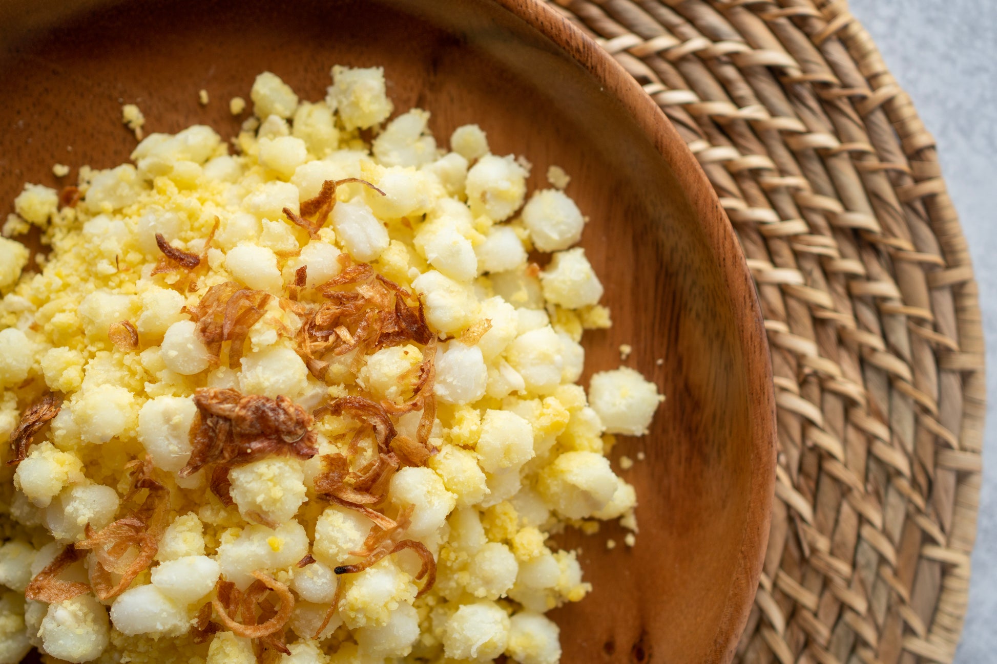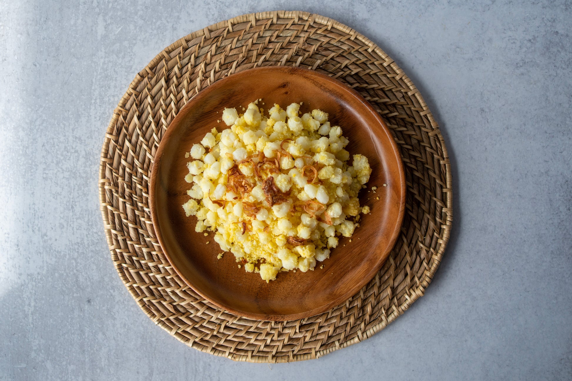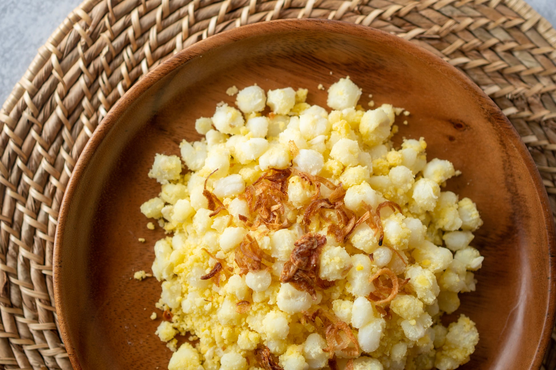 Gạo nếp, Bắp, Đậu xanh, Muối, Hành phi, Đường, Hạt mè