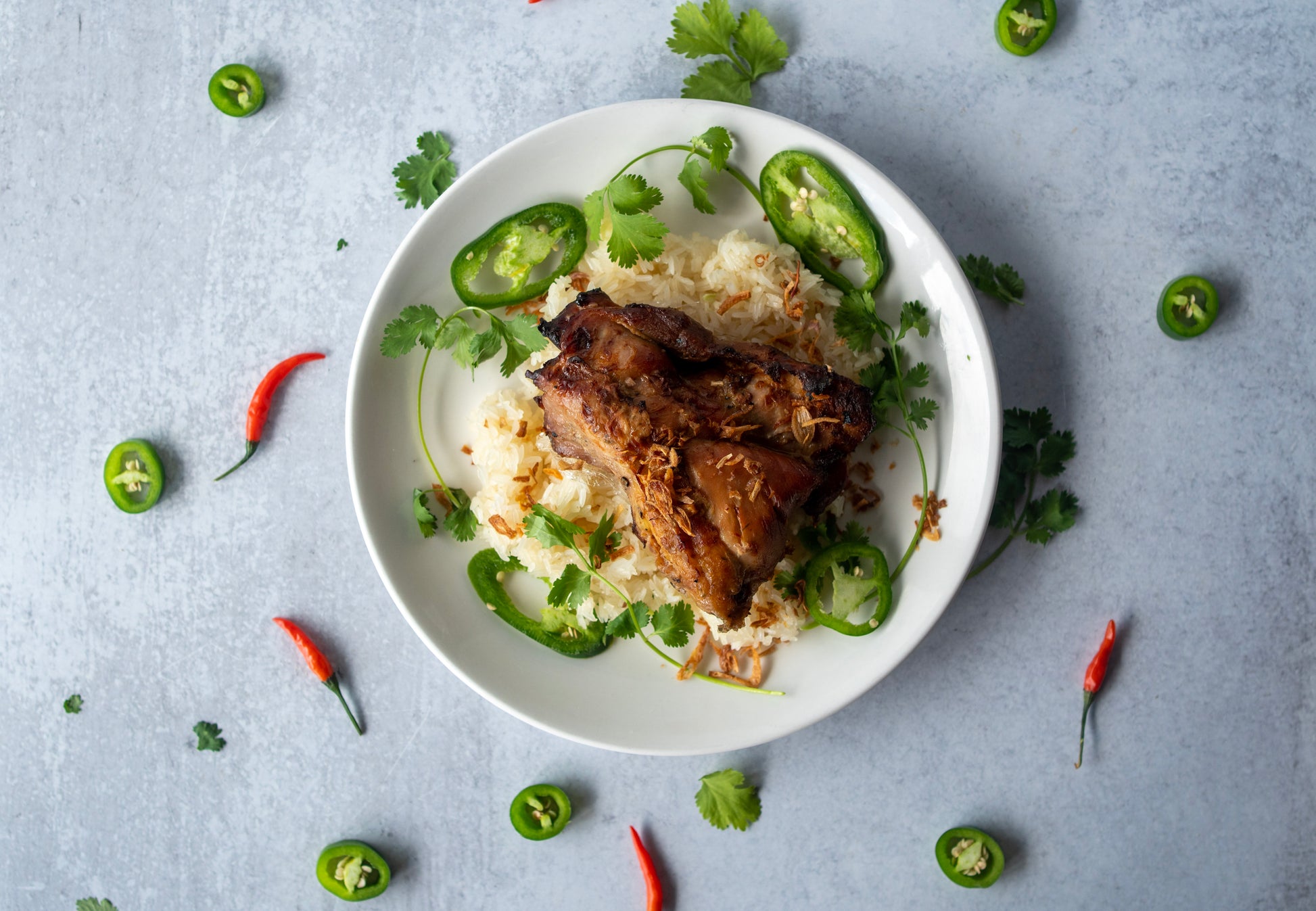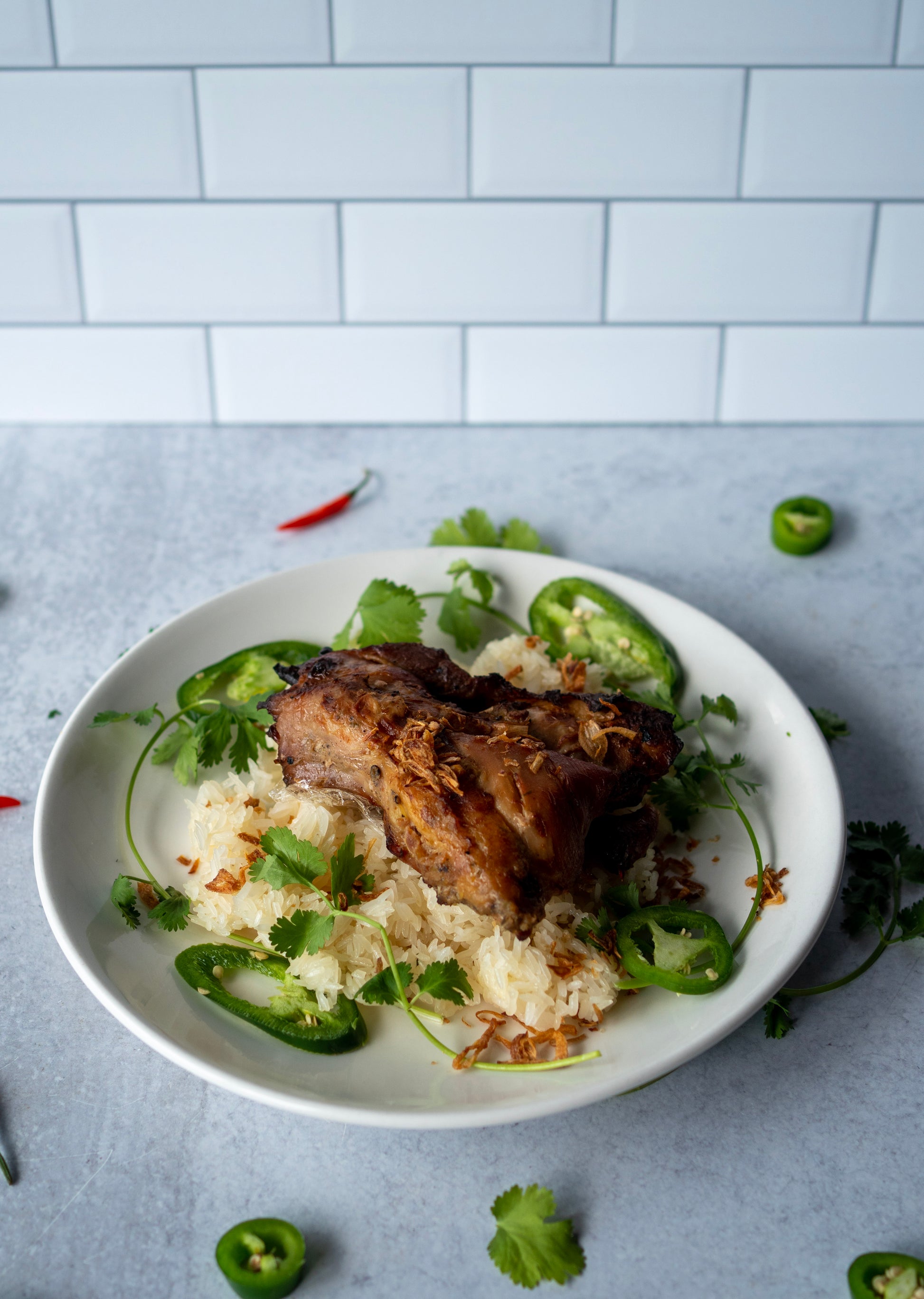 Gạo nếp, Gà nướng, Nước tương, Hành phi, Tôm khô, Chà bông